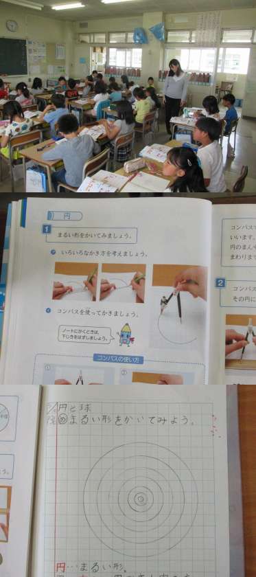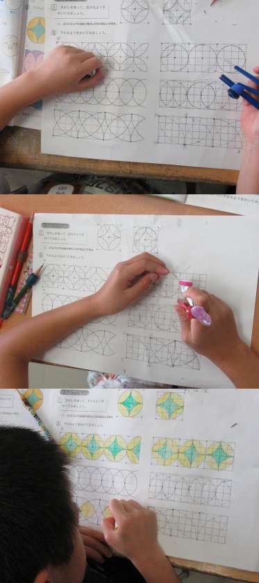 算数:コンパスで円を作図しています