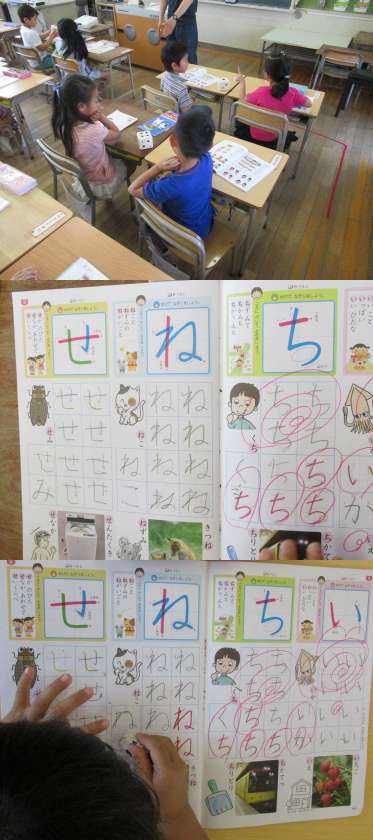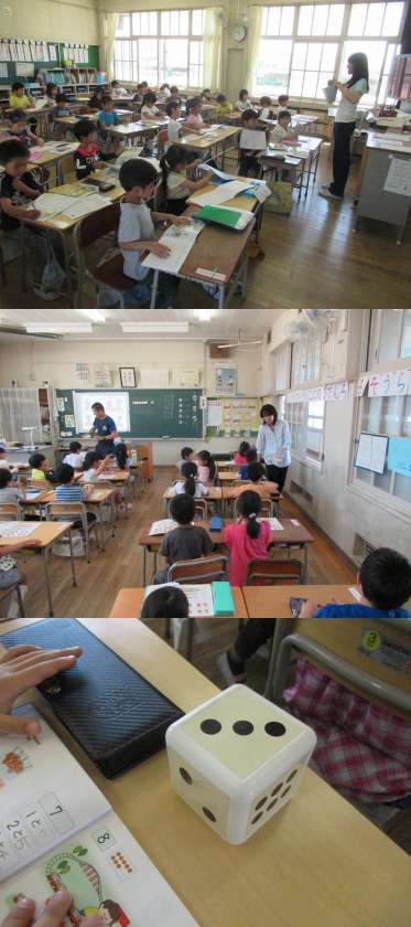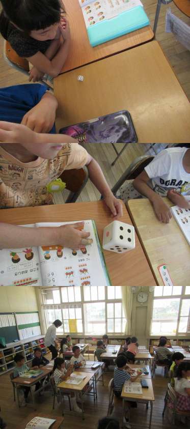 算数「サイコロを2人で投げて、合わせたら?」・ひらがなの練習など