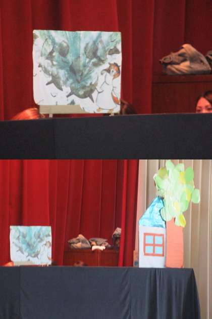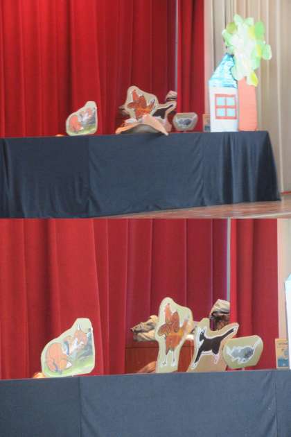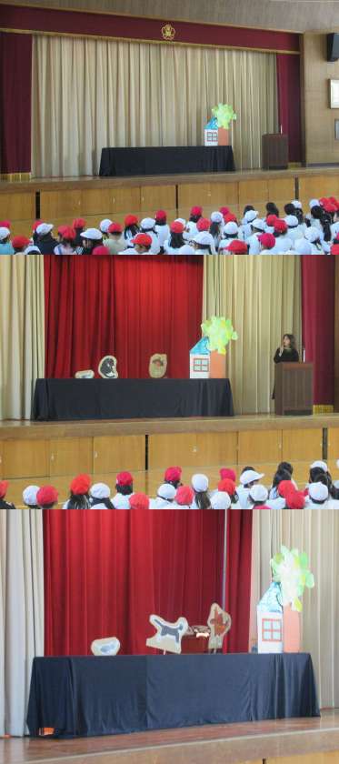 今日から「あじさい読書週間」が始まりました。まずは、PTA図書部のみなさんによる紙人形劇です。みんな集中して見ています。