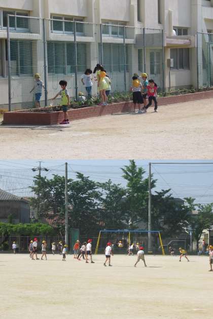 暑さのせいか、外で遊ぶ人数が少ない?