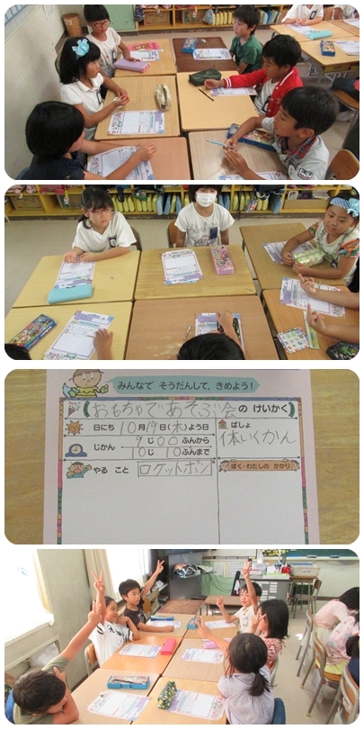 国語:せりふを暗記して発表しています。  1年生を迎える遊びの計画