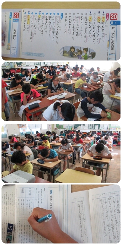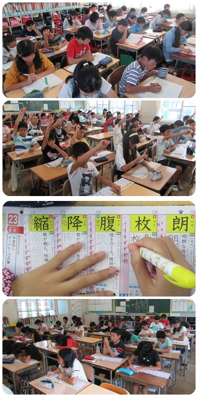 漢字:目をつぶって宙に書いています 国語:敬語
