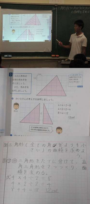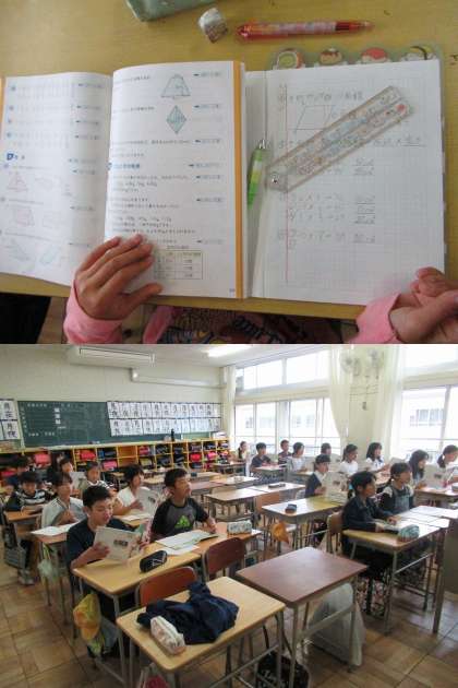 算数:三角形の面積を求める  音楽:合唱練習