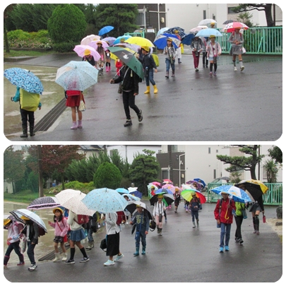 今朝の登校の様子です