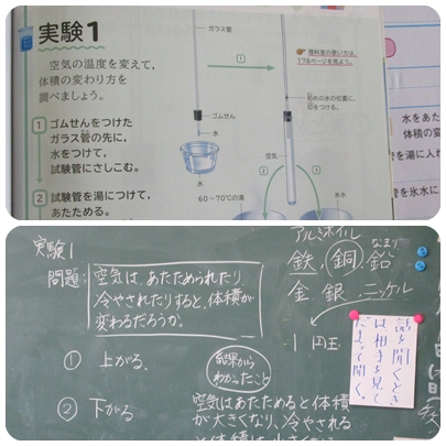 漢字:書き順を憶えています 算数:大きな面積 理科:空気の体積の変化
