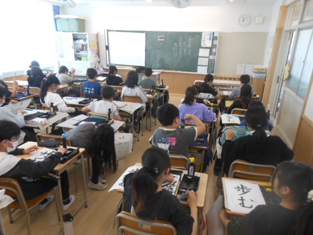 新学年になり、授業も始まっています。算数では図形の対応する角と辺について学びました。書の授業では漢字とひらがなが混じっている「歩む」を落ち着いて丁寧に書きました。