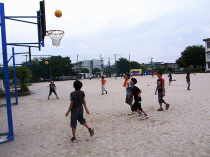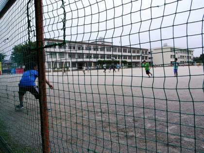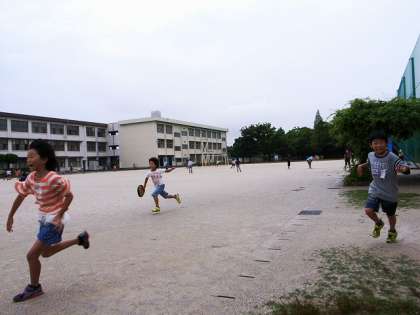 今日は朝から、雨が降ったり止んだりの天気。朝の時間、初めはほとんど雨が降っていなかったので、子どもたちは元気に遊んでいました。