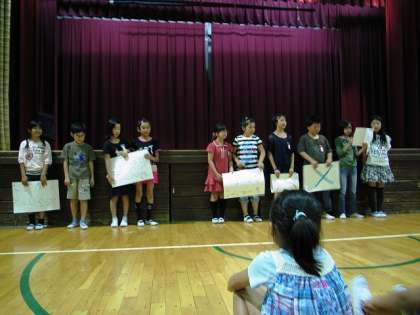 飼育委員会は、クイズ形式でウサギの名前や行動について問題を出して発表していました。クイズに全問正解した子に立ってもらい、拍手でたたえました。