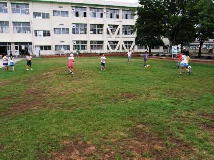 ちょうど2限放課に雨が止みました。子どもたちは、今とばかりに元気にかけだし、運動場・芝生広場・遊具コーナーで遊んでいました。