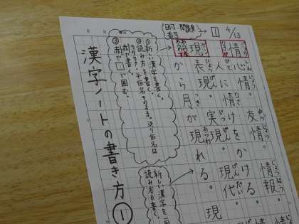 5年2組 漢字ノートの使い方について教えてもらっていました。