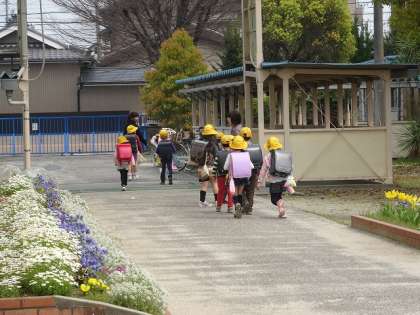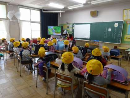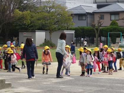 1年生が学年下校で帰ります。明日がお迎え下校の最終ですね。