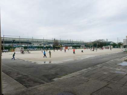 晴れてきて運動場いっぱいに広がって遊んでいます。