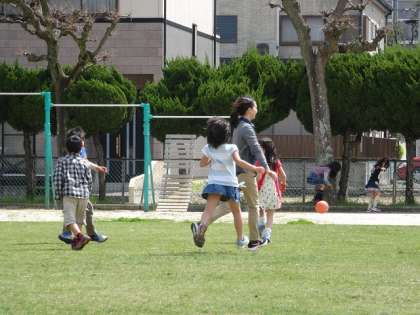 芝生広場で遊んでいます。
