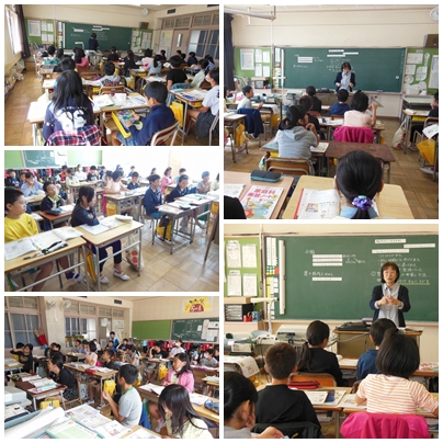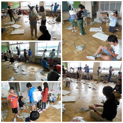 5年1組は家庭科の授業です。「物を生かして 住みやすく」という単元の学習をしていました。2組は、野外造形展の準備です。明日から始まる「春日井まつり」の中の展示の1つである「野外造形展」に出品する作品を制作していました。