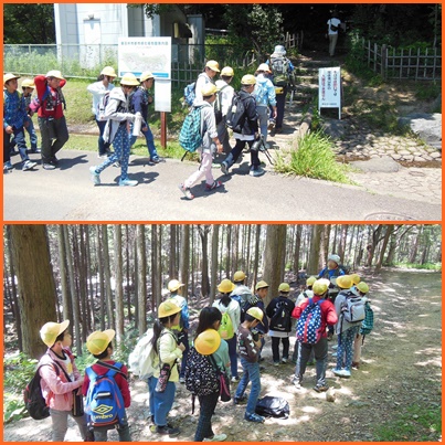入所式の後学級写真を撮り、その後ハイキングを行いました。ガイドさん達にいろいろな木や鳥についての説明を受けながら、歩いてきました。
