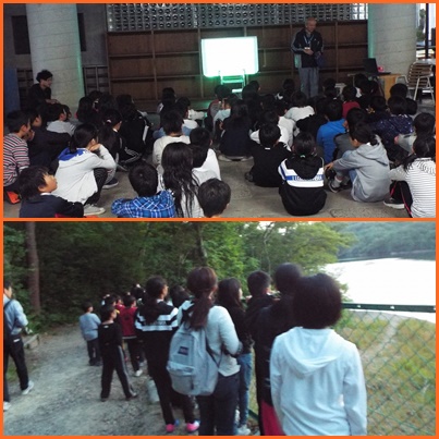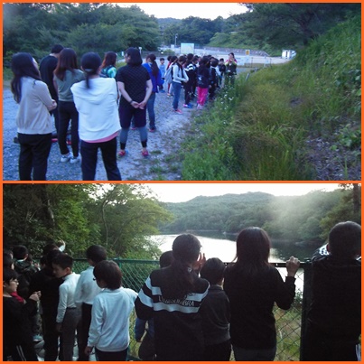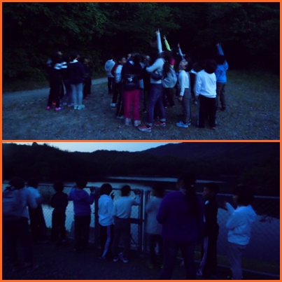 入浴後、ガイドさんの話を聞きながら、ナイトハイクに出かけました。途中、ホタルを見ることもできました。カエルや虫たちの声に耳を傾けながら、歩いてきました。