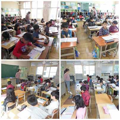 2組は国語の授業です。漢字ドリルを使って、新出漢字を書く練習をしていました。