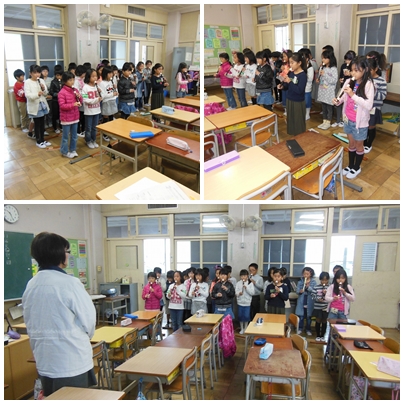 3年1組は音楽の授業です。保育園との交流会に向けて、リコーダーや歌の練習をしていました。