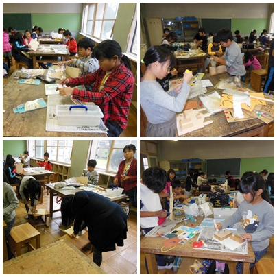 2組は図工の授業です。木工で小物入れの壁掛けを作っていました。