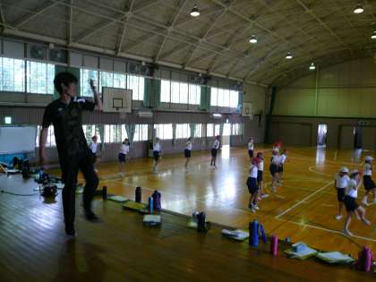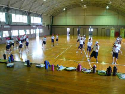 5年生の体育ではダンスをしていました。「USA」の曲に合わせてどの子も楽しく踊っていました。隊形移動もあり、なかなか本格的でした。先生もノリノリです。