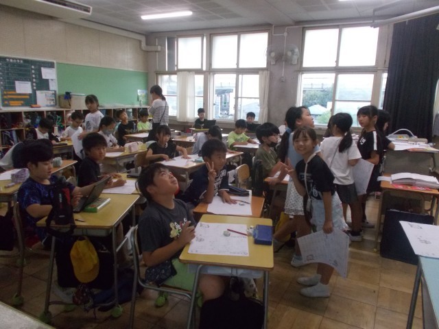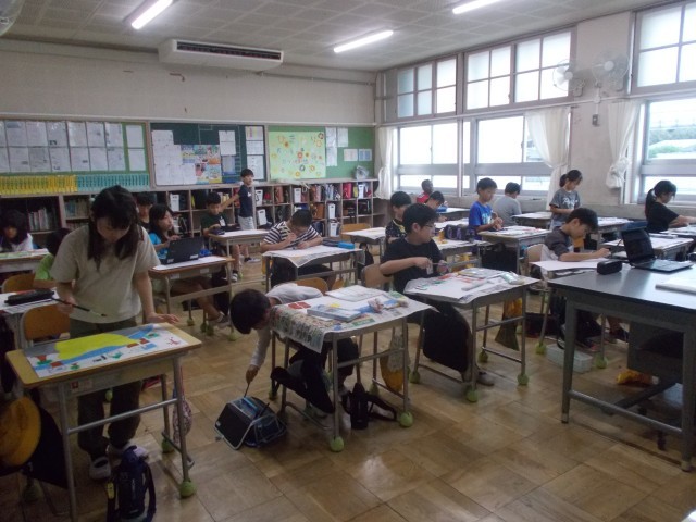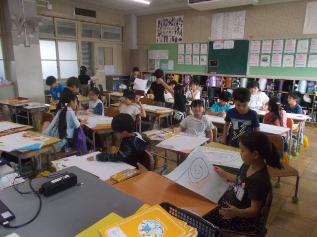 スポーツフェスティバルも間近となりましたが、どの学級も落ち着いて学習しています。図工の学習をしている学級では、思い思いに描いたり作ったりしていました。