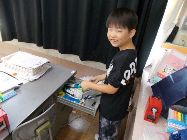 前日に引き続き、5年2組でも家庭科「物を生かして住みやすく」の整理・整とん活動を行いました。