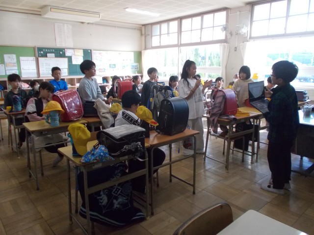 4年生は算数の授業で意見を発表しあっていました。話し合いながら学びを深めています。5年生の帰りの会では一日を振り返ってよかった出来事を発表していました。笑顔が増える時間ですね。