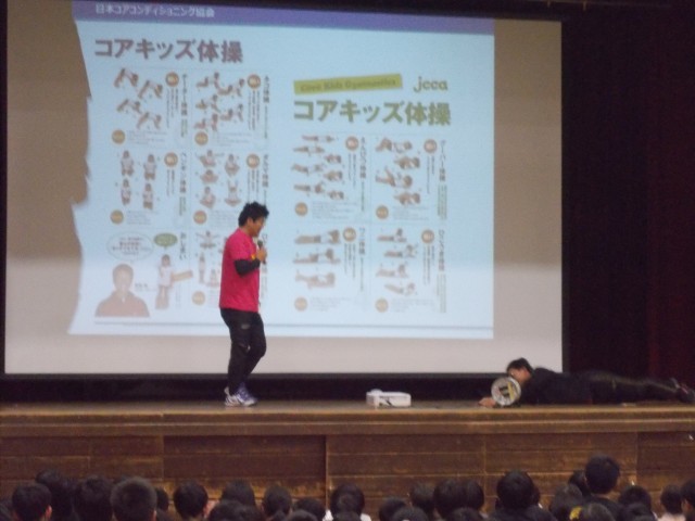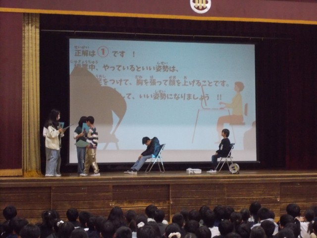 5時間目に「姿勢」をテーマに専門家の先生を招いて学校保健委員会が行われました。保健委員会のみなさんによる発表では白山小学校児童の「姿勢」に対する意識が分かりました。そして講師の先生が教えてくださるコアキッズ体操を実際にチャレンジしながら楽しく活動しました。姿勢がよくなるとよいことがいっぱいでしたね!ぜひ、日々の生活に取り入れていきましょう。