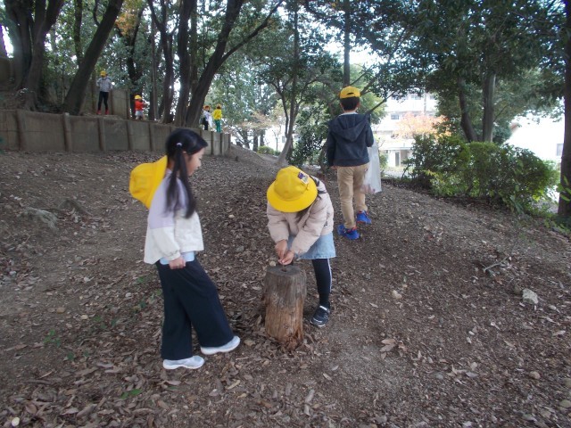春日山にどんぐりひろいに出かけました。例年よりは少ない気がしましたが、みんなたくさん見つけて帰ってくることができました。収穫したどんぐりでどんなことができるか楽しみです。