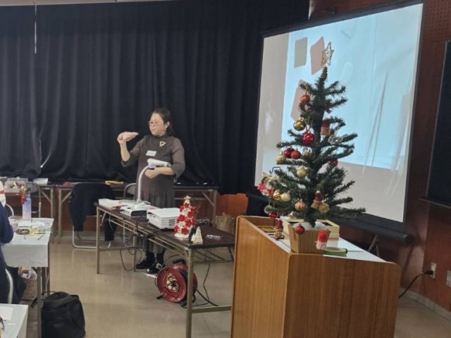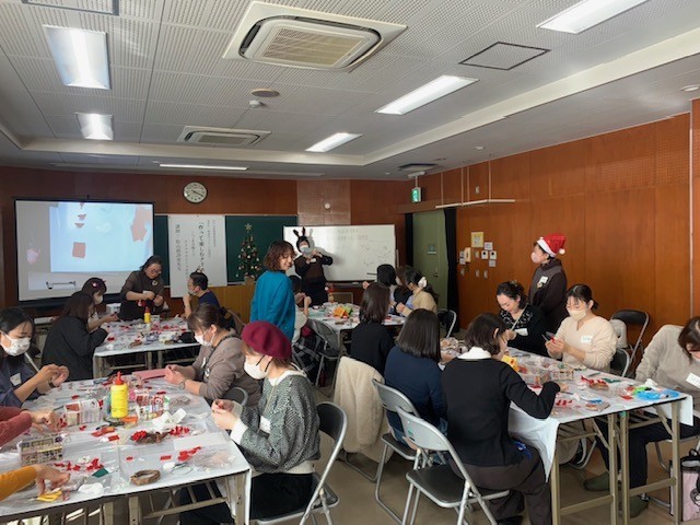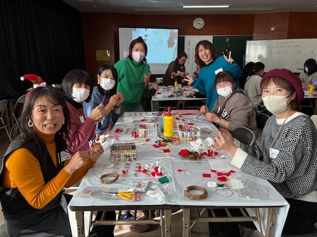 PTAブロック家庭教育委員会では「つまみ細工によるクリスマスリース作り」が行われました。近隣学校のPTA役員委員さんが集まり、和やかな会となりました。
