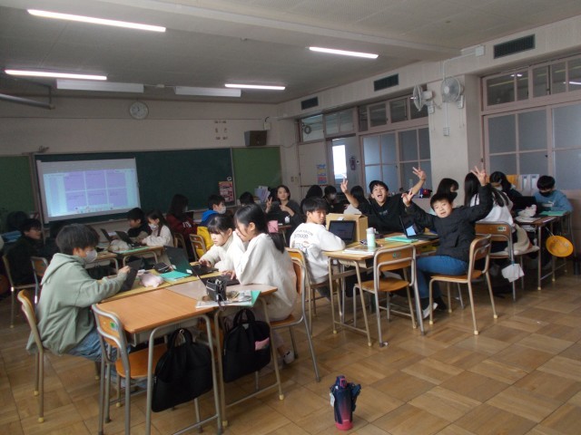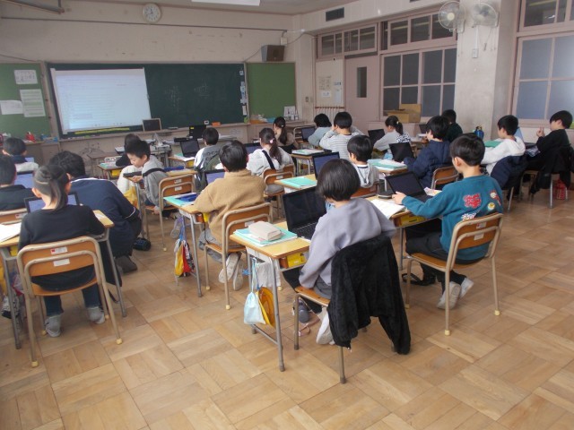4年生の図工ではダンボールボックスをつかって自分の世界を表現していました。6年生はグループで話し合いながら課題を解決していました。