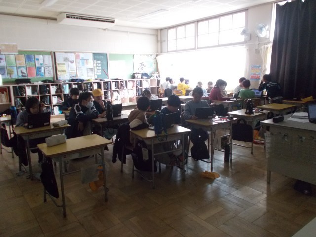 高学年ではタブレット端末を使いながら話し合って進める授業が多く行われていました。お互いの意見を聞き合う様子が見られました。