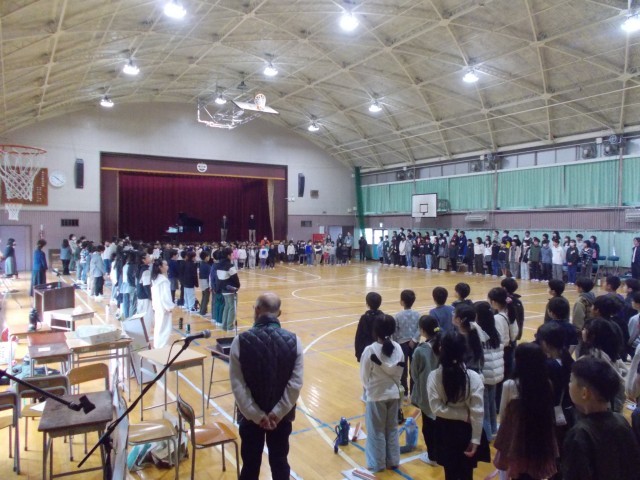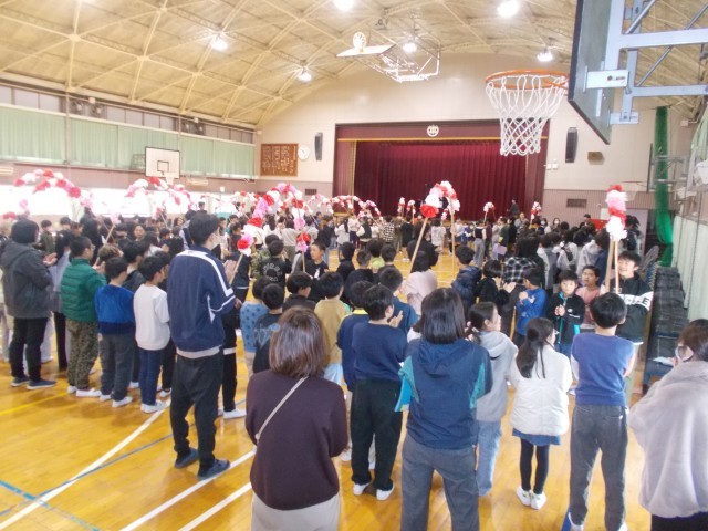 本日は、全校児童で「6年生を送る会」を開催いたしました。1年生から5年生は、これまでやさしく学校をリードしてくれた6年生へ、歌や出し物で感謝の気持ち届けました。一生懸命な下級生の姿と、それをやさしく見つめる6年生の穏やかな表情が印象的で、会場全体が温まる素晴らしい時間となりました。バトンを受け継ぐ在校生、そして新たな門出を控えた卒業生。互いの思いが通じ合う会になりました。保護者の皆様、日頃より子どもたちを支えていただきありがとうございます。ぜひ、ご家庭でも今日の思い出を話題にしてみてください。