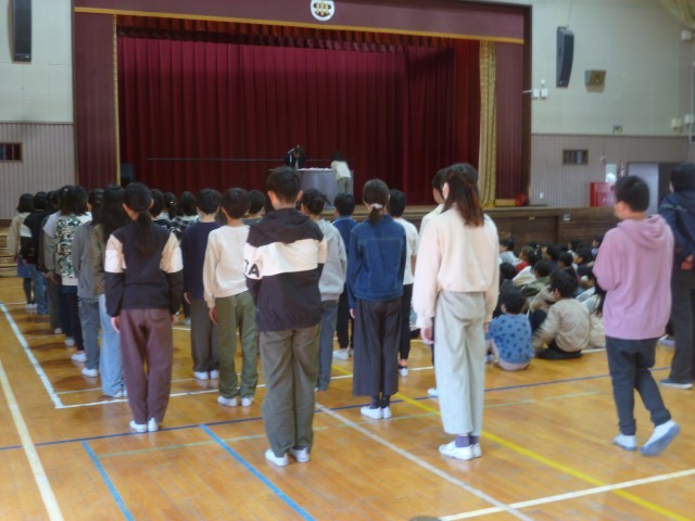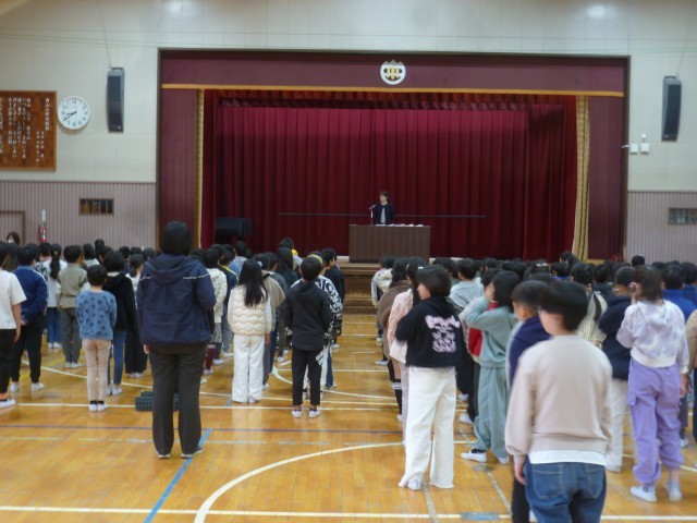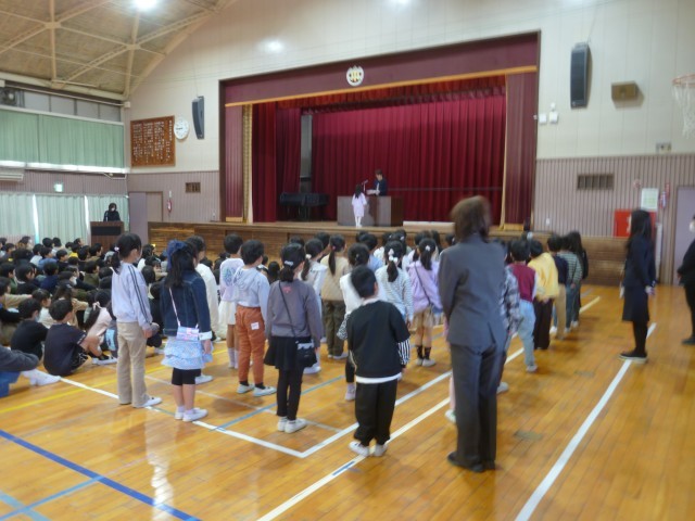 この一年、子どもたちは日々の学習や行事を通し、心身ともに逞しく成長しました。式に臨む真剣な眼差しや立派な姿からは、次学年への意欲が感じられ、大きな感動をもらいました。 保護者の皆様には、本校の教育活動への温かなご支援とご協力をいただき、心より感謝申し上げます。春休みを安全に過ごし、4月にまた元気な笑顔で会えることを楽しみにしています。一年間、本当にありがとうございました。