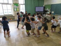 音楽は「はくと リズム」の学習です。「しろくまのジェンカ」をリズムに合わせて踊りながら、楽しく学んでいました。