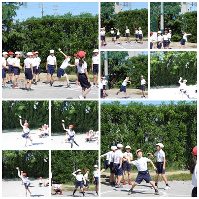 ソフトボール投げの測定をしていました。