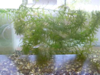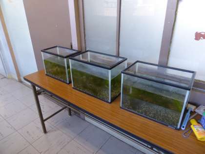 5年生の教室の廊下で、メダカを飼っています。