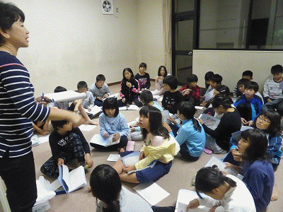 反省会は、クラスごとに分かれて、談話室で行いました。