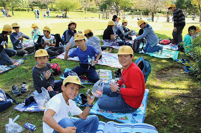野外学習 都市緑化植物園でおにぎりを食べました!