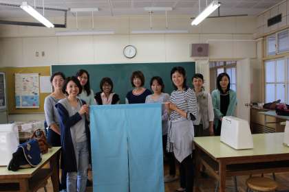 PTAのお母さん方が、児童用トイレの入口にかける