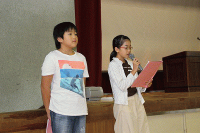 県下児童生徒席上揮毫大会に参加する学校代表者の壮行会が、