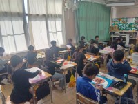4年生の体育の授業の様子です。窓を全開にして換気扇を回しました。新聞紙でボールを作り、お互いに距離を取りながらボールを上げてキャッチする練習をしました。