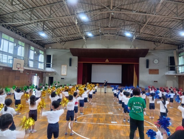 運動会練習も大詰めです。前回までの練習で、入場から退場まで全ての動きを覚えられたので、今日は「ポンポン」をもって実際のダンスを踊ってみました。ポンポンがあることで、これまで練習してきたダンスが、より魅力的に見えた気がします。本番が楽しみですね。