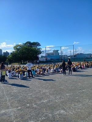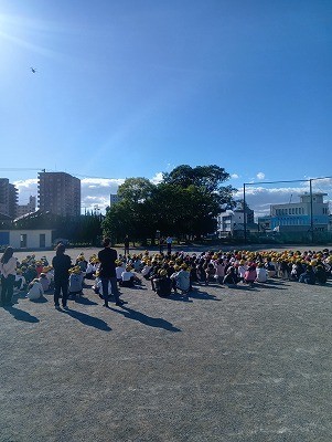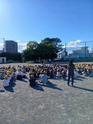 今回は、避難時に不明者が発生することも想定した訓練でしたが、救出されるまでの間、児童のみなさんが落ち着いて待機できていました。すばらしいです。