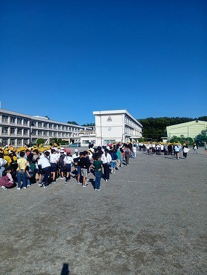 今週予定されていた避難訓練を、本日実施しました。今週のいつ実施するかは、子どもたちとほとんどの職員は知らない状態でしたが、子どもたちの真剣な表情がたくさん見られました。先生たちの指示に従って行動しつつ、場面に応じて、自ら判断して行動できるとよいですね。