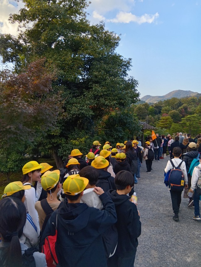 秋の夕焼けに美しく輝く鹿苑寺を見学しました。この後はホテル本能寺に向かいます。