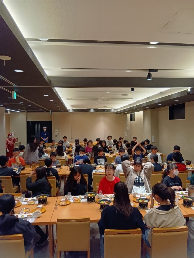 起床してから朝食までの時間で、ほとんどの部屋班が出発準備まで整えることができました。すばらしいですね。「いただきます」までにかかる時間も、どんどん短くなってきています。2日目もみんなで力を合わせて、よい修学旅行にしていきましょうね。