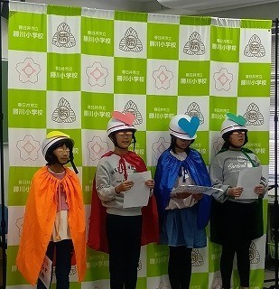今日の児童集会では、まず、各種表彰伝達を行いました。その後、委員会の発表です。飼育委員会は、生き物クイズを紹介しました。福祉委員会は、募金のお礼です。最後は代表委員会が挨拶運動などの活動紹介を行いました。みんなで委員会活動へ協力できるとよいですね。