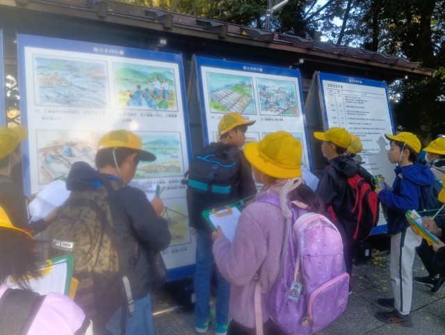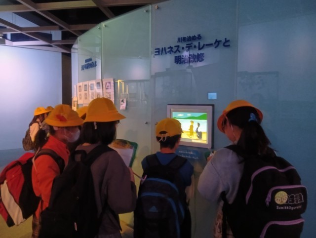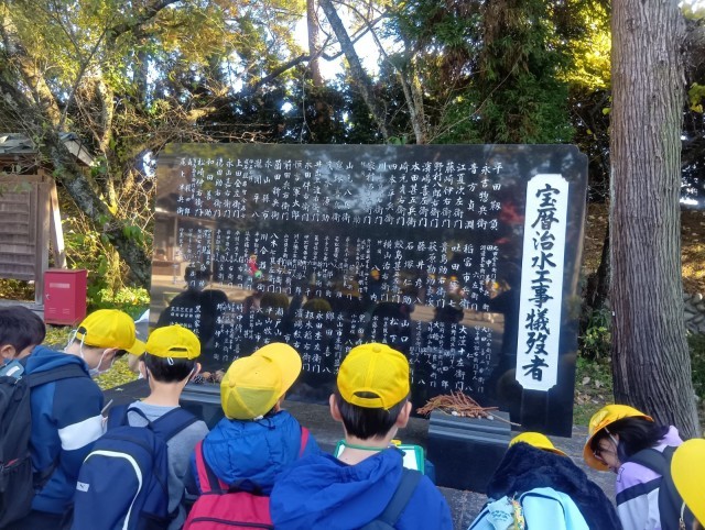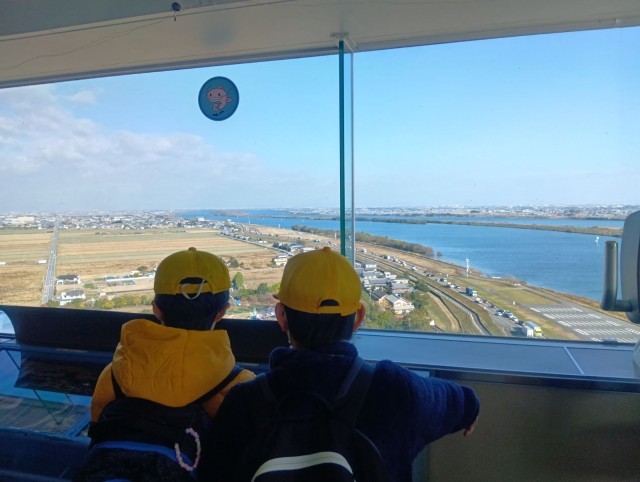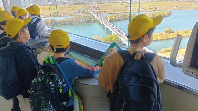 4年生は、木曽三川公園へ行きました。天気も良く、展望タワーからは木曽三川を眺めることができました。輪中の農家の家や水屋、治水神社などを見学し、昔の人々の工夫や努力を知ることができました。社会科で学習したことを、実際に見ることのできるよい機会となりました。また、気持ちのよい挨拶をしたり、時間を守って集合・整列をしたりすることができ、来年の野外学習にもつながる素晴らしい姿が見られました。