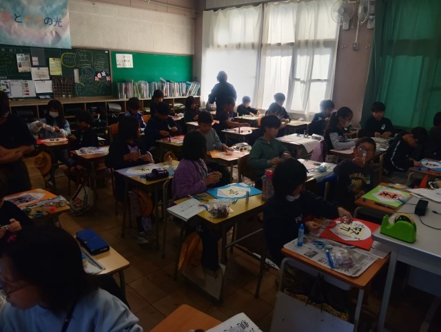 書道科講師の大矢先生による授業が行われました。お気に入りの漢字を1字選んで、扇面に書きました。となりには、その字に思いを込めてメッセージを書きました。最後に、折り紙やマスキングテープで思い思いに飾り付けし、素敵な作品を完成させることができました。